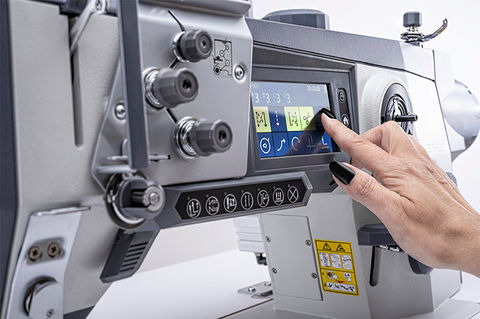 Equipped with a thread trimmer, thread clamp for a clean seam beginning. Switchable, second tension, second stitch length and top feed stroke. Recallable via the switch bar in the arm of the machine. With the built-in LED sewing light and an integrated touch control panel in the machine arm, the VETRON 4000 series offers all the features of a modern, classic industrial sewing machine.